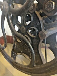 unlike the Pearl which is the wood handle and the steel rod on the upper left side of the press next to the flywheel. This mechanism was entirely missing, and without this picture I would never have known what it was supposed to look like. There are many broken parts that need difficult repairs as well. I will take them one at a time and hopefully resolve each one. And so it starts!