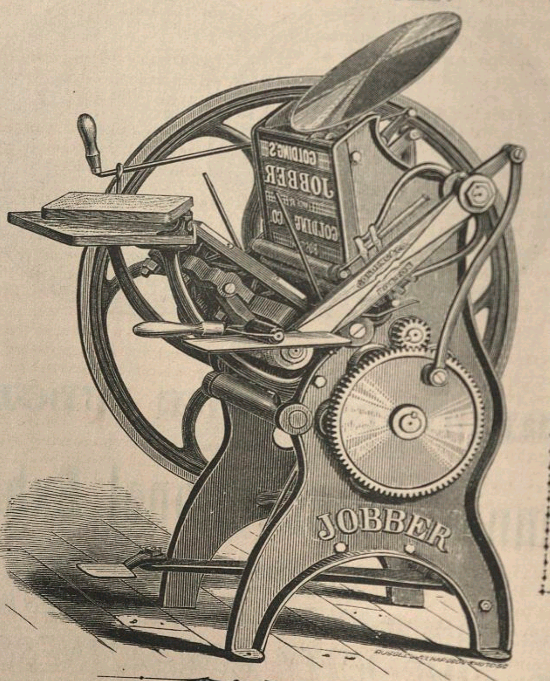 Here is a picture from a Golding catalog from 1877. It shows the exact press. I requested the information from Harvard University that houses the Golding business records and has catalogs for most years. It took 6 months to get it, but, it was worth it.