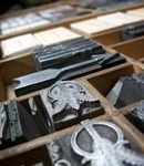 A word about my new gauge. As I visit Briar Press I often read how new enthusiasts have difficulty adjusting their presses. The two main issues are proper inking, and even impression. I decided to try to do something about it. One gauge already existed which is for measuring proper roller height. It is nicknamed the lollypop because of its shape. I couldn’t find any gauge to help adjust the evenness of the platen. I like gauges! My new dual gauge addresses both of these issues. On one end is a white lollypop which is used to set roller height for proper inking. It is very easy to use and the ink stripe you create is very easy to see against the white color. In addition however, I have added two black platen height gauges that can be adjusted to fit any size platen press up an 8″x12″ or there abouts. These black pieces are adjusted with the thumbscrew to be in a top and bottom corner of your platen. You can also adjust them to be in diagonal corners. You simply loosen the lock nuts on the platen and turn the screw in until you get one side of the platen evenly adjusted against the two black cylinders. Repeat this on the other side, then recheck the first side. You do this without ink, chase, or packing on the press. The cylinders are sized so that after adjustment, and you add a normal packing to the press you are very close to proper and even impression. It is especially helpful if you want to disassemble your press for cleaning and need to get it back into specs to prevent harming type or plates. It is made of brass and delrin so there is nothing to rust or corrode. Purchase your own here.